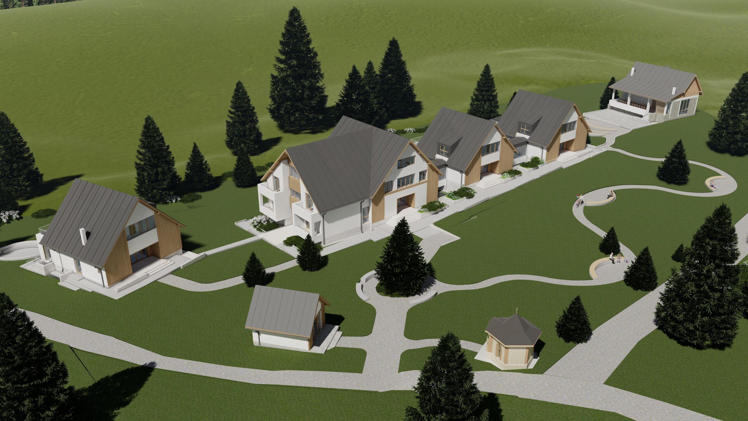 Ceea ce ne dorim să realizăm va fi un centru multifuncțional format din 6 clădiri distincte, dar perfect integrate şi interconectate, care să răspundă nevoilor beneficiarilor, după cum urmează: